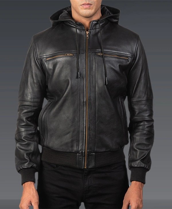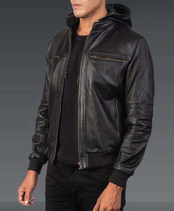 Original Real Cow Leather Semi-Aniline Finishing Inner Shell Quilted Viscose lining along with Detachable Hood with Zipper Front Opening Zipper Collar Band Cuff Style Rib Knit Sleeves Two Pocket Inside & Four Pocket Outside Colour In Black